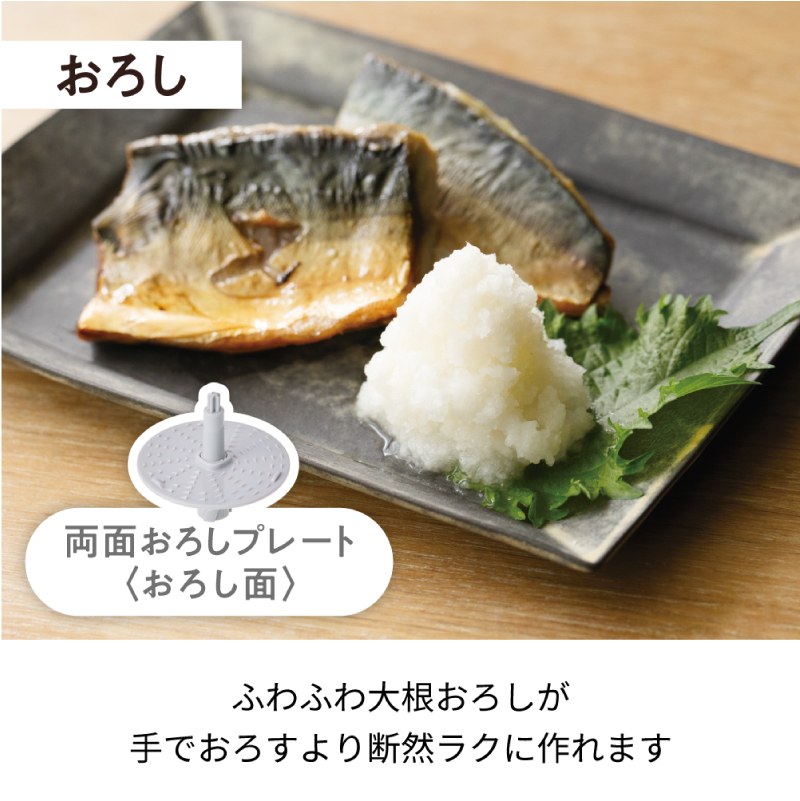 ”刻む・混ぜる・砕く・練る・つぶす・鬼おろし・おろし・泡立てる”の1台8役をこなします。