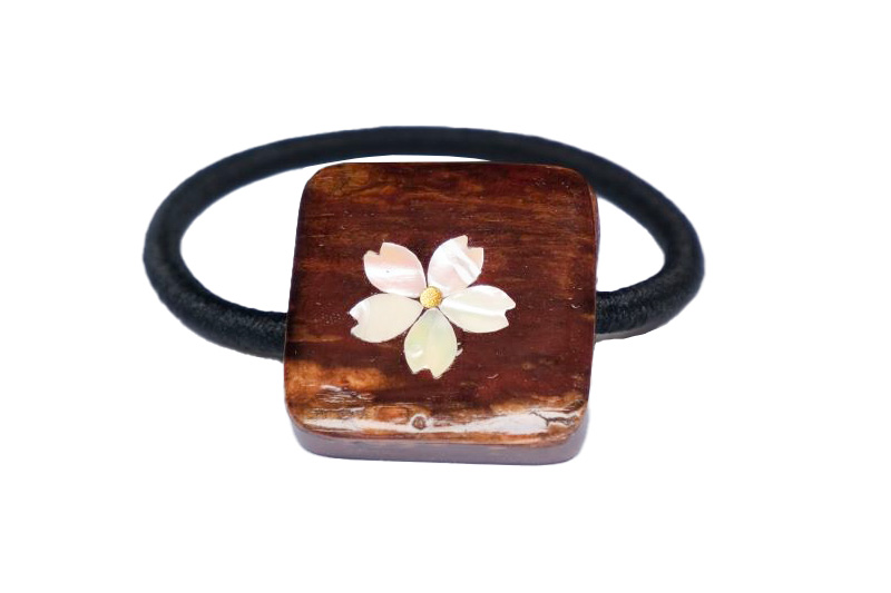 山桜の樹皮を用いたヘアゴムです。経年変化を楽しめるお品です。