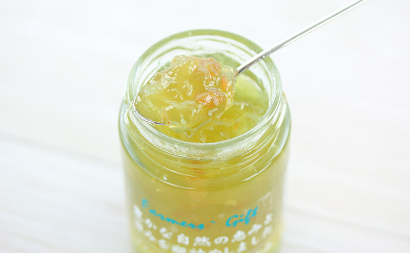 高級ぶどう品種の信州産シャインマスカットの果肉を使用し、甘みを抑えジャムにしました。フルーツ本来の甘みと香りがぎゅっと詰まっており、瓶を開けた瞬間に広がる芳醇な香りは、日々の食卓を豊かに彩ります。プレザーブスタイルで仕上げられたこのジャムは、果実の風味を最大限に生かしながらも、みずみずしい美味しさです。