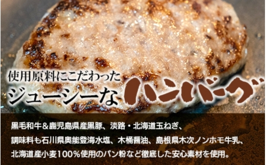 黒毛和牛&鹿児島県産黒豚、淡路・北海道玉ねぎ、調味料も石川県奥能登海水塩、木桶醤油、島根県木次ノンホモ牛乳、無添加パン粉など徹底した安心素材を使用。肉本来の味がしっかり感じられ、程よいジューシーさがある逸品に仕上げました。