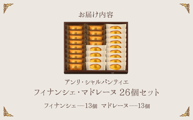 この機会に是非『フィナンシェ・マドレーヌ詰め合わせ(26個入り)』で優雅なひと時をお過ごしください。