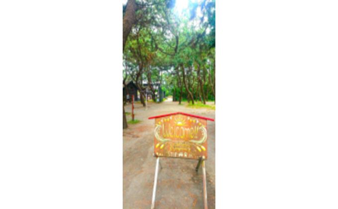 ちがさき柳島キャンプ場内テントサイトで、テント・タープ・テーブルが設置された状態でお貸しする常設のセットアップテントプランの無料引換券です。