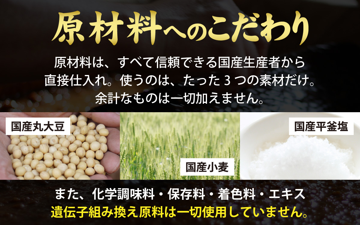 原料はすべて国産の丸大豆・小麦・平釜塩のみ。