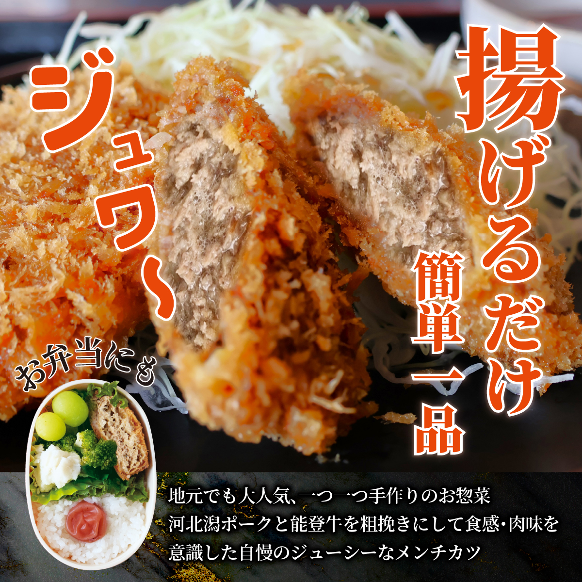 食べ応えがあり、肉汁がジュワっと溢れるメンチカツになっています。