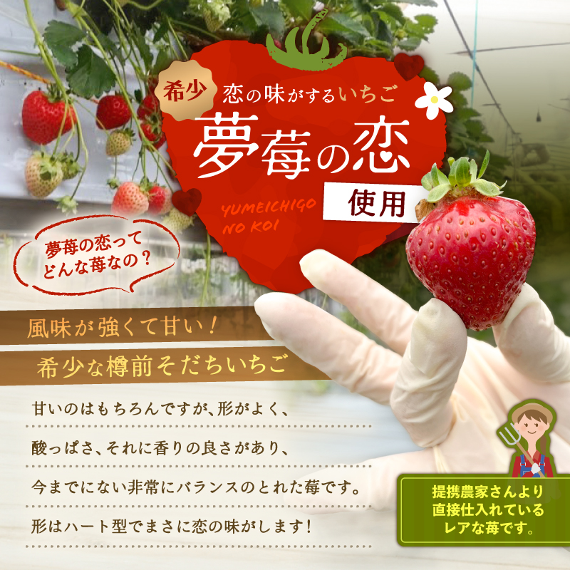 この希少な苺は、信州大学で開発・支援を受けて、樽前山麓の苫小牧市樽前地区で栽培されています。