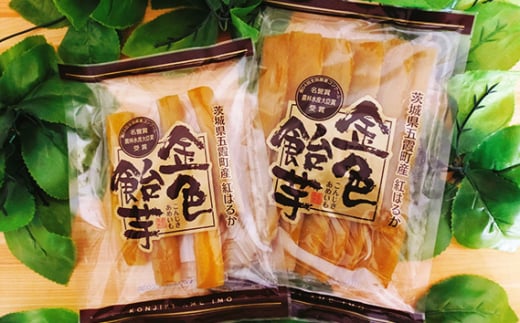 「金色飴芋(こんじきあめいも)」は、五霞町産紅はるかを原料とした期間限定の干し芋です。