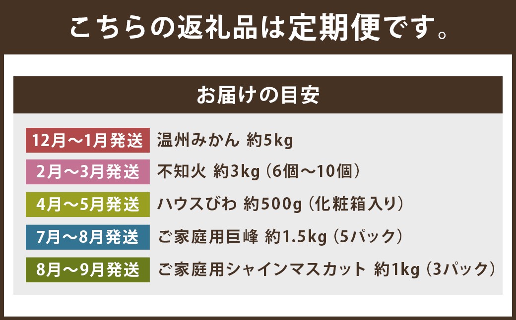 巨峰、シャインマスカット、みかん、不知火、ハウスびわ