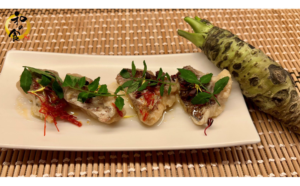 そんなワサビを、真鯛に合う特製のワサビソースに仕上げました。
