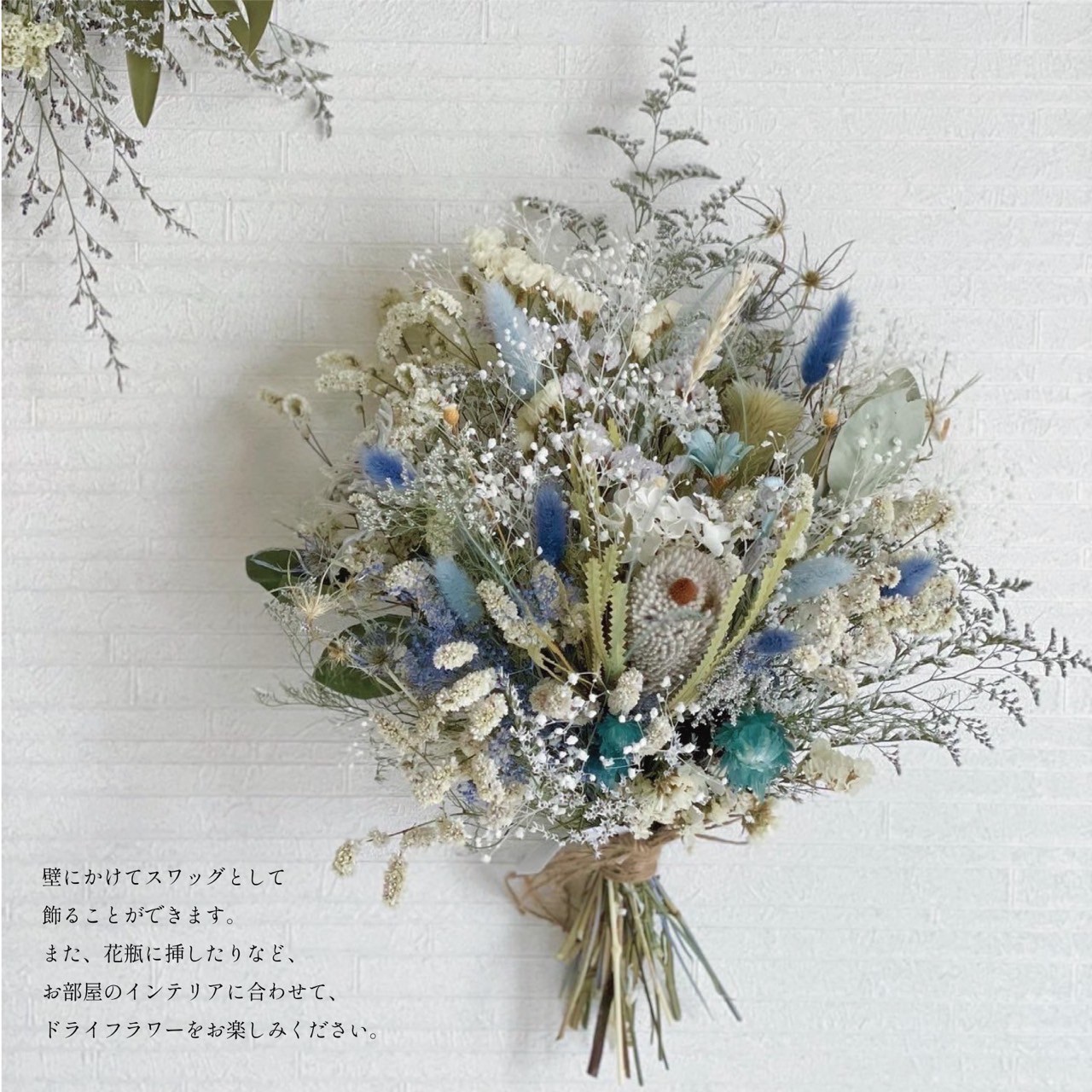 壁に掛けたり、花器にいけたり、自由に飾って頂けます。