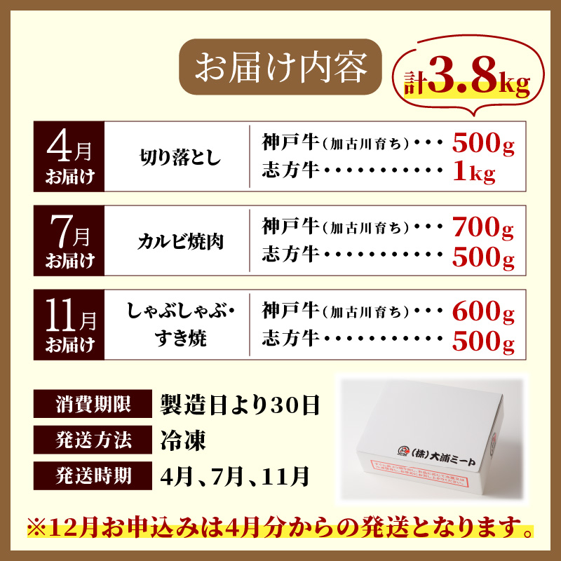 (4月切り落とし、7月カルビ焼肉、11月しゃぶしゃぶ・すき焼き)