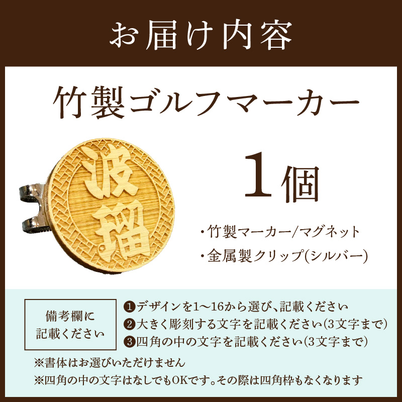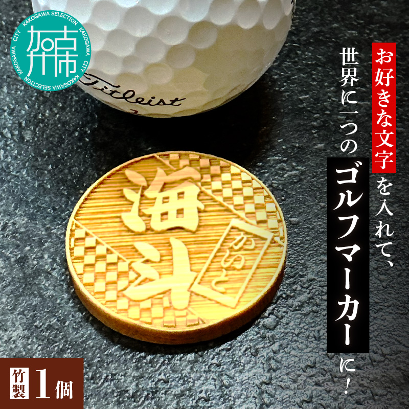 レーザー彫刻を施した竹札のゴルフマーカーです。