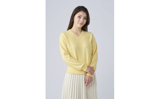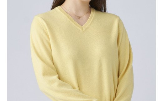 日本製 カシミヤ100% レディース Vネック イエロー Lサイズ(身幅47cm 身丈56cm) 1着