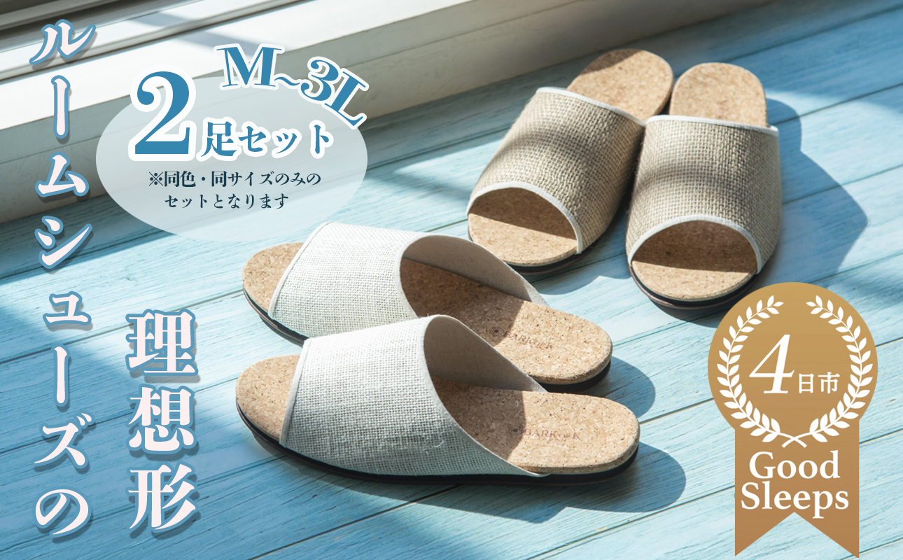 ルームシューズの理想形。天然素材、静音性、高反発クッションで足にやさしい、コルクでむれにくい、綿や麻の素材で、春夏らしいデザイン。「バークオブケイ」コルクルームシューズ爽(Made in Japanの高品質)(春夏デザインバージョン)LLサイズ(28.0cm) カラー:茶 2足セット【スリッパ、室内履き、シューズ、靴、リビング、ビジネス、インテリア、三重県、四日市市、ふるさと納税】-[G1437-12]