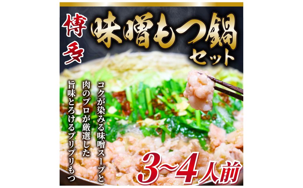 博多味噌もつ鍋 3~4人前セット(牛もつ(200g×2パック)・味噌スープ400g・ちゃんぽん麺2玉・鷹の爪1袋・ニンニク1袋)