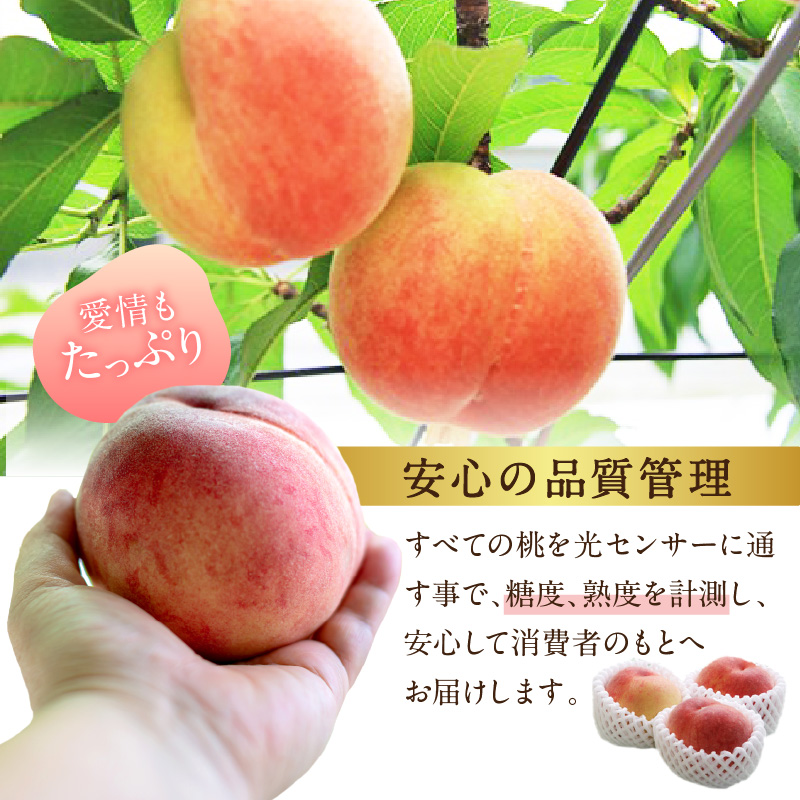 すべての桃を光センサーに通すことで、糖度、熟度を計測、安心して消費者のもとへお届けします。