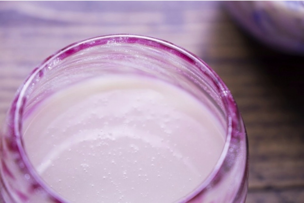 岩手県産のいちごを使用したいちごシロップを加えて作ったいちご糀甘酒です。