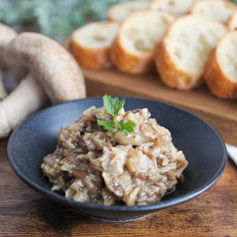 「とろっとうまみ 椎茸タプナード」は、秋田県産椎茸を刻み、しょっつると塩麹、白ワインを使って仕上げました。塩麹の優しい塩味と、しょっつるの旨味が後を引く美味しさとなっています。
