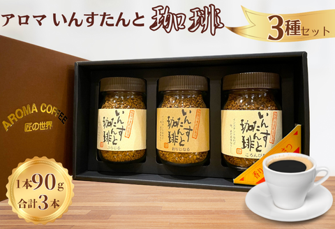 当店自慢の大人気商品、いんすたんと珈琲を3種類セットにてご提供いたします。