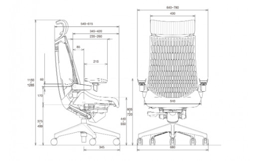 【サイズ】W640~780(脚:670mm)×D540~615×H1150~1265mm(SH:440~555)