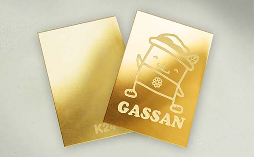 純金ならではの重みとやわらかな反射が小さなプレートに落ち着いた存在感を与え、ガッさんの表情がいっそう印象的に映える仕上がりとなっています。