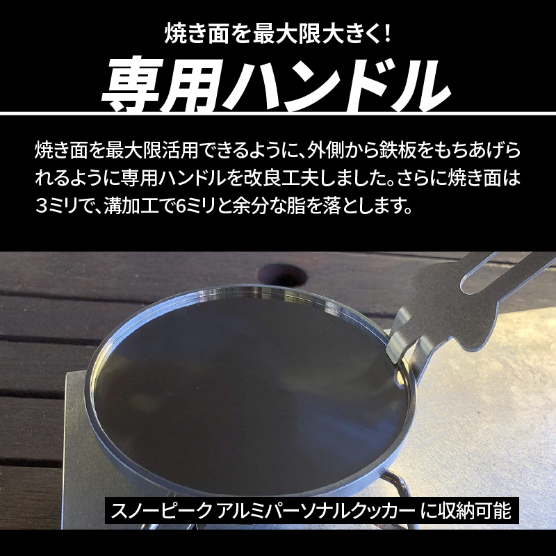 鍛冶屋の頓珍漢 C127T9 丸鉄板 9mm厚 3mm溝 ソロキャンプ用 専用ハンドル付き スノーピーク アルミパーソナルクッカーサイズ×1個