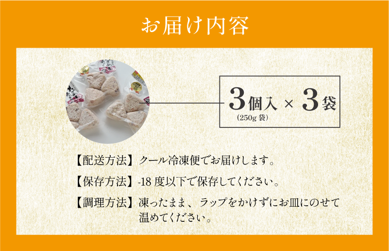 【調理方法】凍ったまま、ラップをかけずにお皿にのせて温めてください。