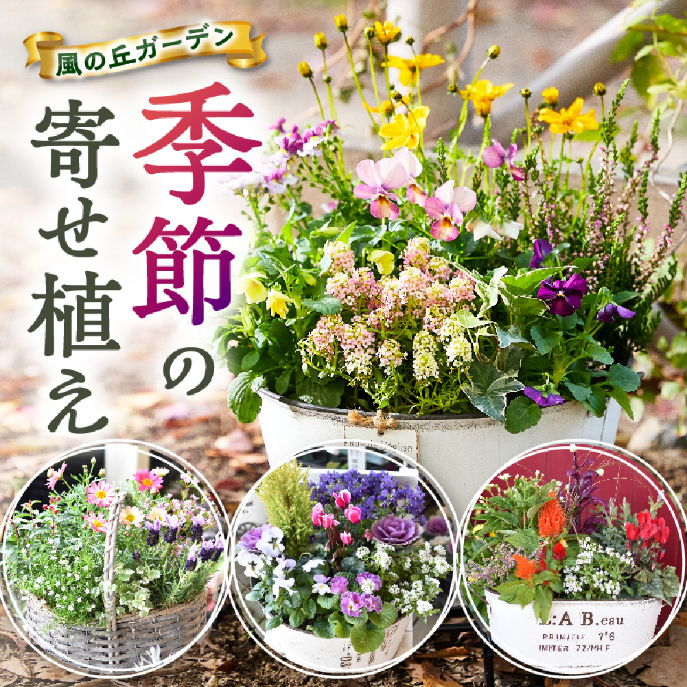 四季折々の花苗をバスケットかブリキ鉢に寄せ植えしてお送りいたします!
