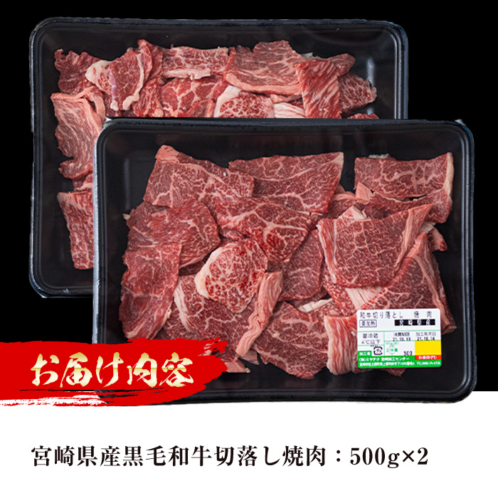 宮崎県産黒毛和牛切落し焼肉:500g×2