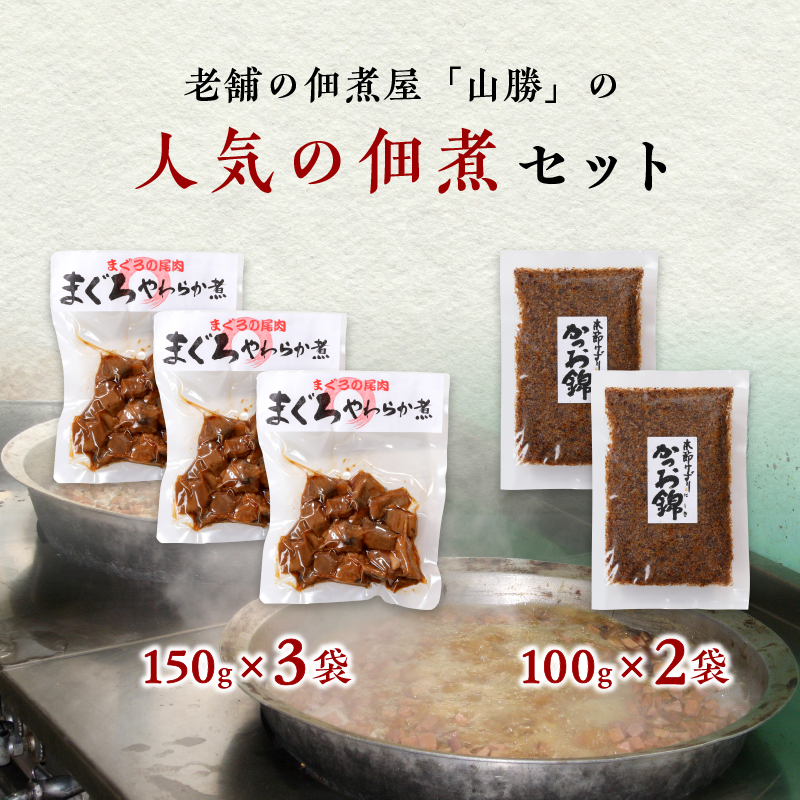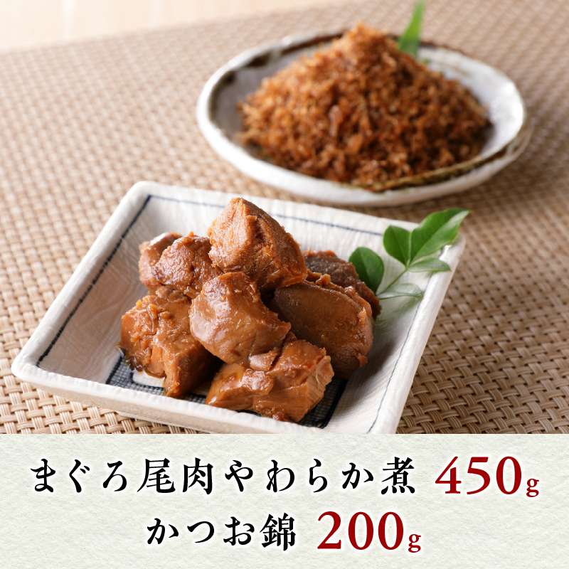 まぐろ尾肉やわらか煮:150g×3袋、かつお錦:100g×2袋