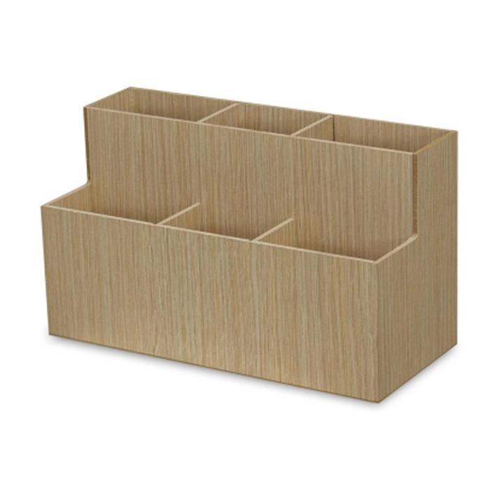 前後高さの違う6個のスペースにはリモコン以外にも眼鏡や文房具などを整理して収納することができます。高低差をつけることで、リモコンを分かりやすく収納できるのもポイントです。また、ほこりがたまりやすい内側も仕切りが外せるのでお手入れも簡単。さらに、収納のサイズにあわせて仕切りを外して使うこともできます。
