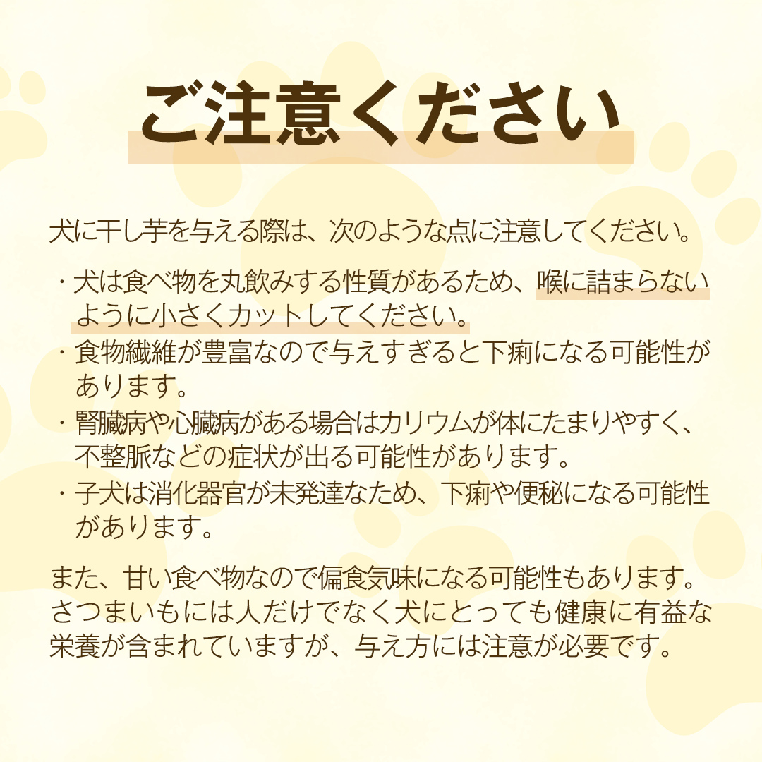 犬に干し芋を与える際は、次のような点に注意しましょう。