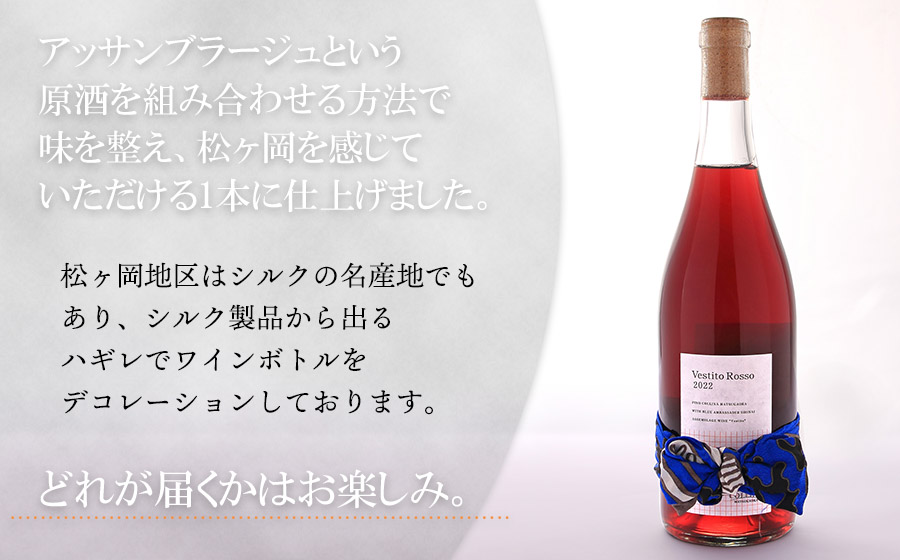 ご好評いただいている「ANA SHONAI BLUE Ambassador」とのコラボレーションワイン「Vestito」シリーズの赤ワイン、どうぞご賞味ください。