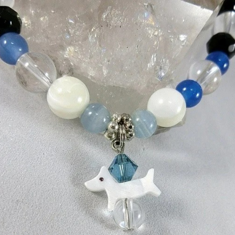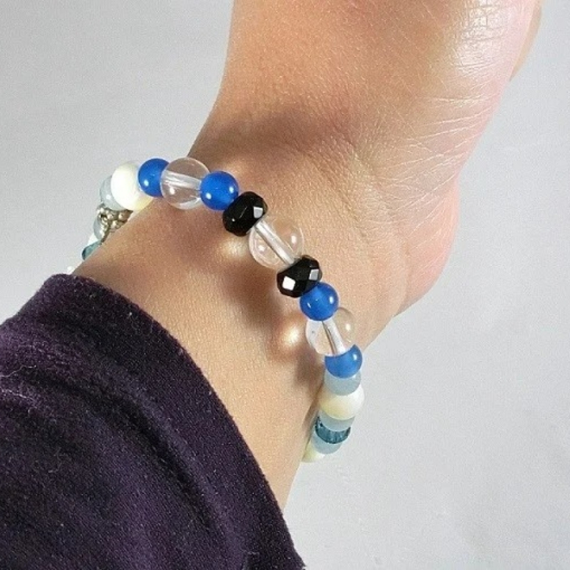 アクアマリン、オニキス、ブルーアゲート、マザーオブパール、水晶