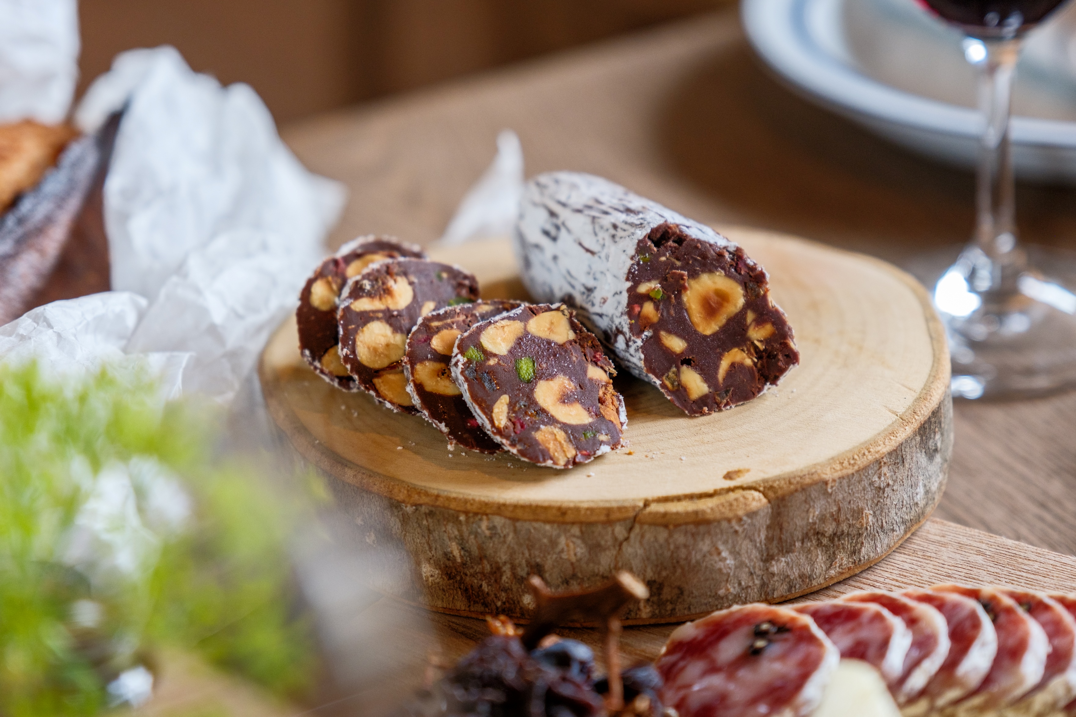 ナッツやドライフルーツ、洋酒を練り込んだ「ソシソン・オ・ショコラ」は、お酒とも相性抜群な大人のチョコレートスイーツです。