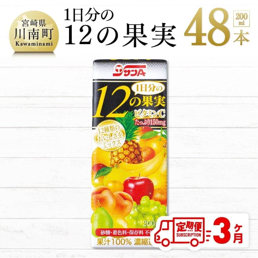 ふるさと納税 定期便 全3回 サンA ジュース 1日分の12の果実 飲料 果汁飲料 朝食 フルーツ習慣 200ml 48本 送料無料 紙パック F3025t3 宮崎県川南町 川南町
