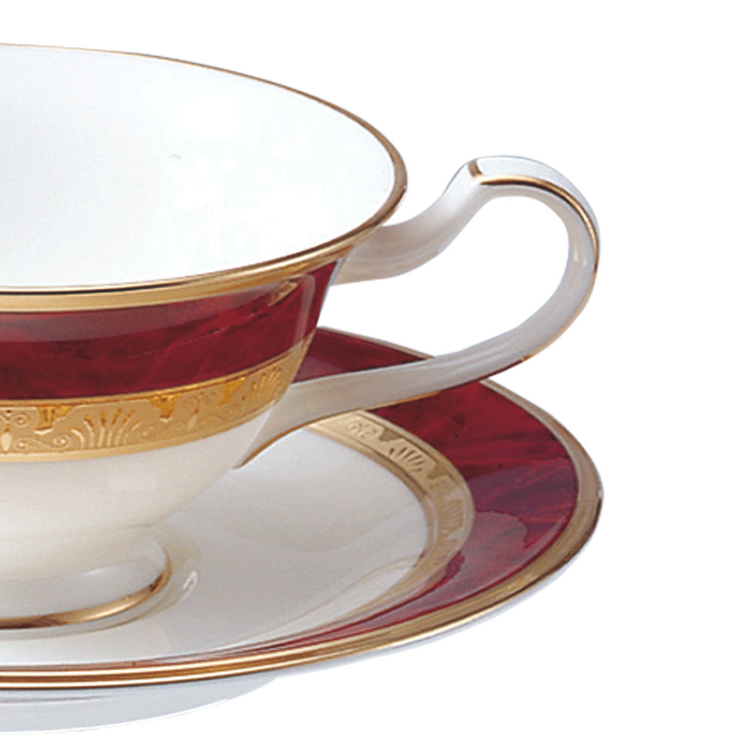 気品あるマロン色、ヘミングウェイをアクセントに。こちらのカップはコーヒーにも紅茶にも兼用いただける形状です。