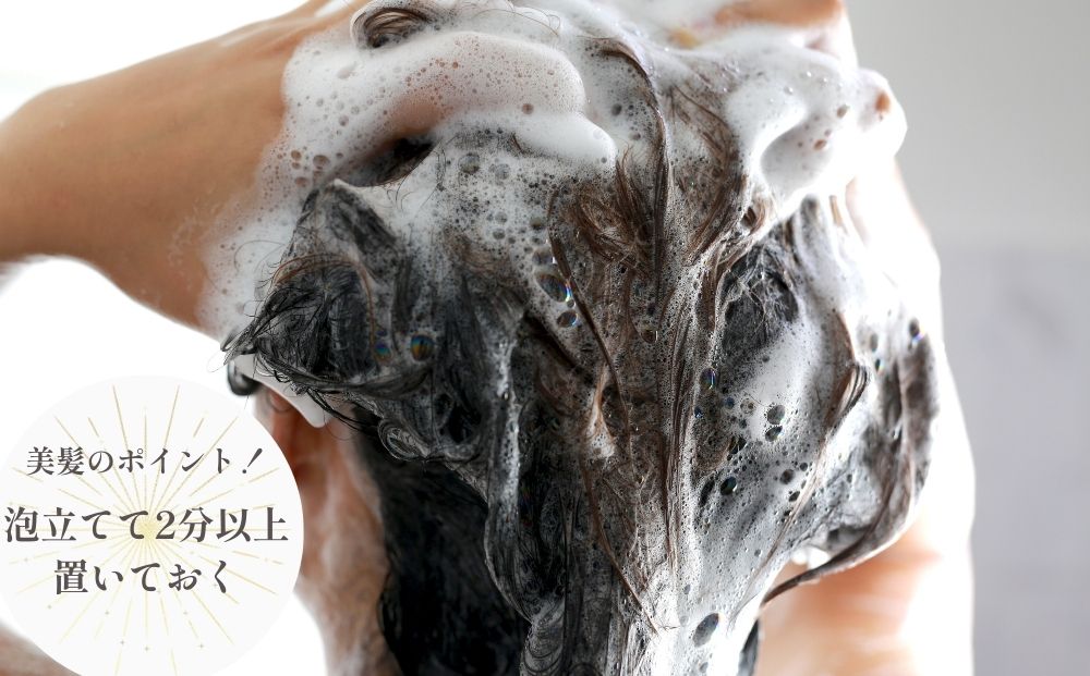 きめ細かな泡が髪と頭皮をやさしく包み込み、泡立て後に2分置くことで頭皮ケア効果がアップ。