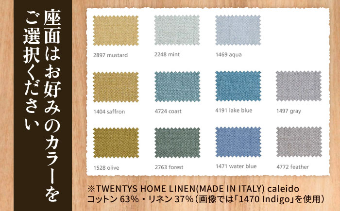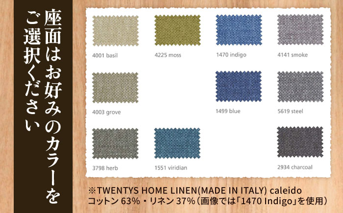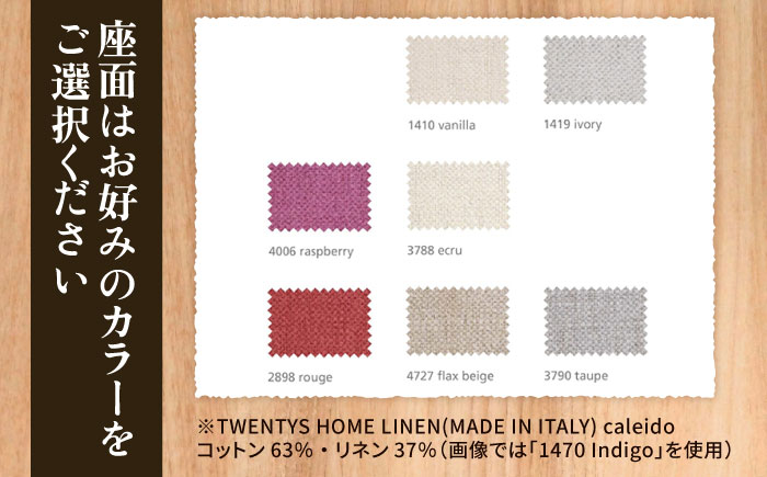 座面生地:20s TWENTYS HOME LINEN(MADE IN ITALY) caleido を使用 63%コットン・37%リネン
