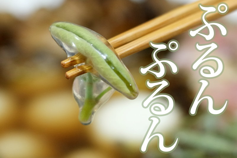 じゅんさいのぷるぷるゼリーがあつあつです!やけどに注意してくださいね!