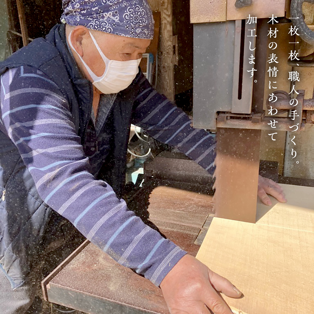 板目は表面を重視しているので、強く傷が付きにくく、柾目は出来るだけ年輪が細かいところを使用しています。