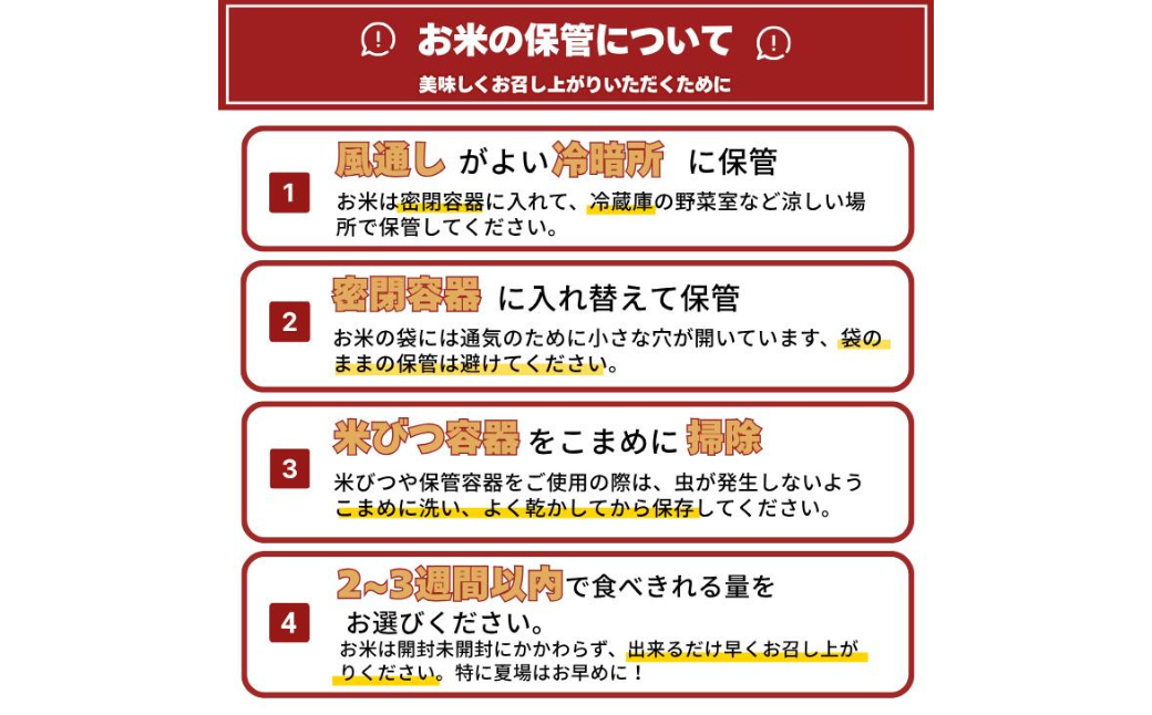 ※品質保持の為なるべく涼しい所で保管して頂き、精米日後1か月程でお早めにお召し上がり下さい。