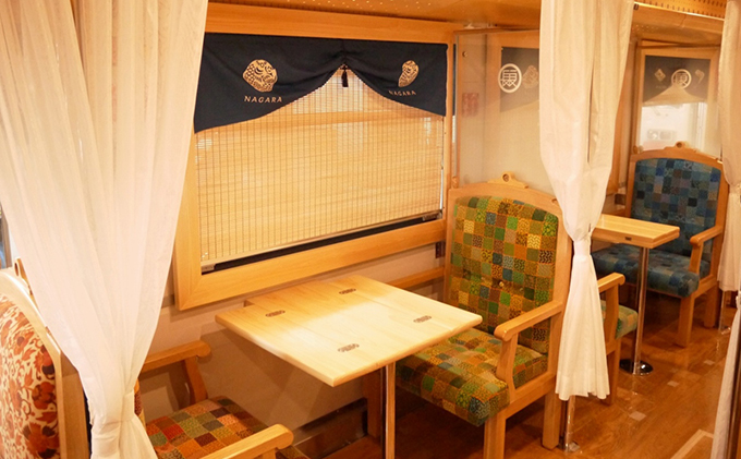 観光列車「ながら」スイーツプラン予約券2名様分。乗車には予約が必要。長良川鉄道全線で1日間有効なフリー切符を含む。スイーツプランの運行区間は郡上八幡駅~美濃太田駅間。