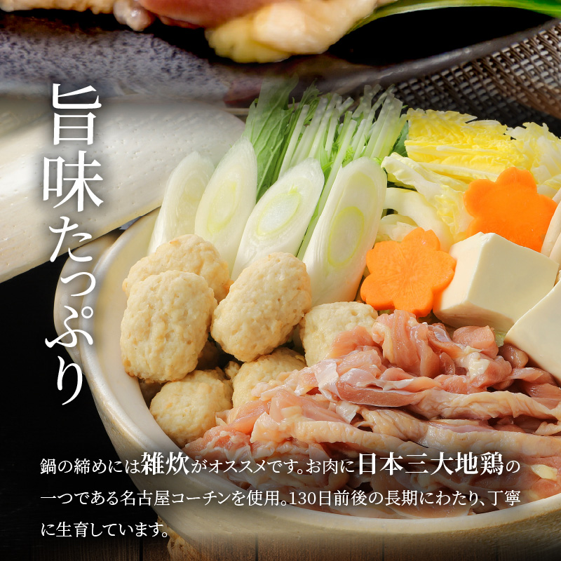 名古屋コーチン鍋 セット 2 〜 3人前 日本三大地鶏 地鶏 鶏 鶏肉 もも肉 肉団子 スープ 鍋 鶏鍋 スープ付き 食感 コク 旨み 料理 名古屋発祥 冷凍 お取り寄せ お取り寄せグルメ 食品 愛知県 小牧市 送料無料