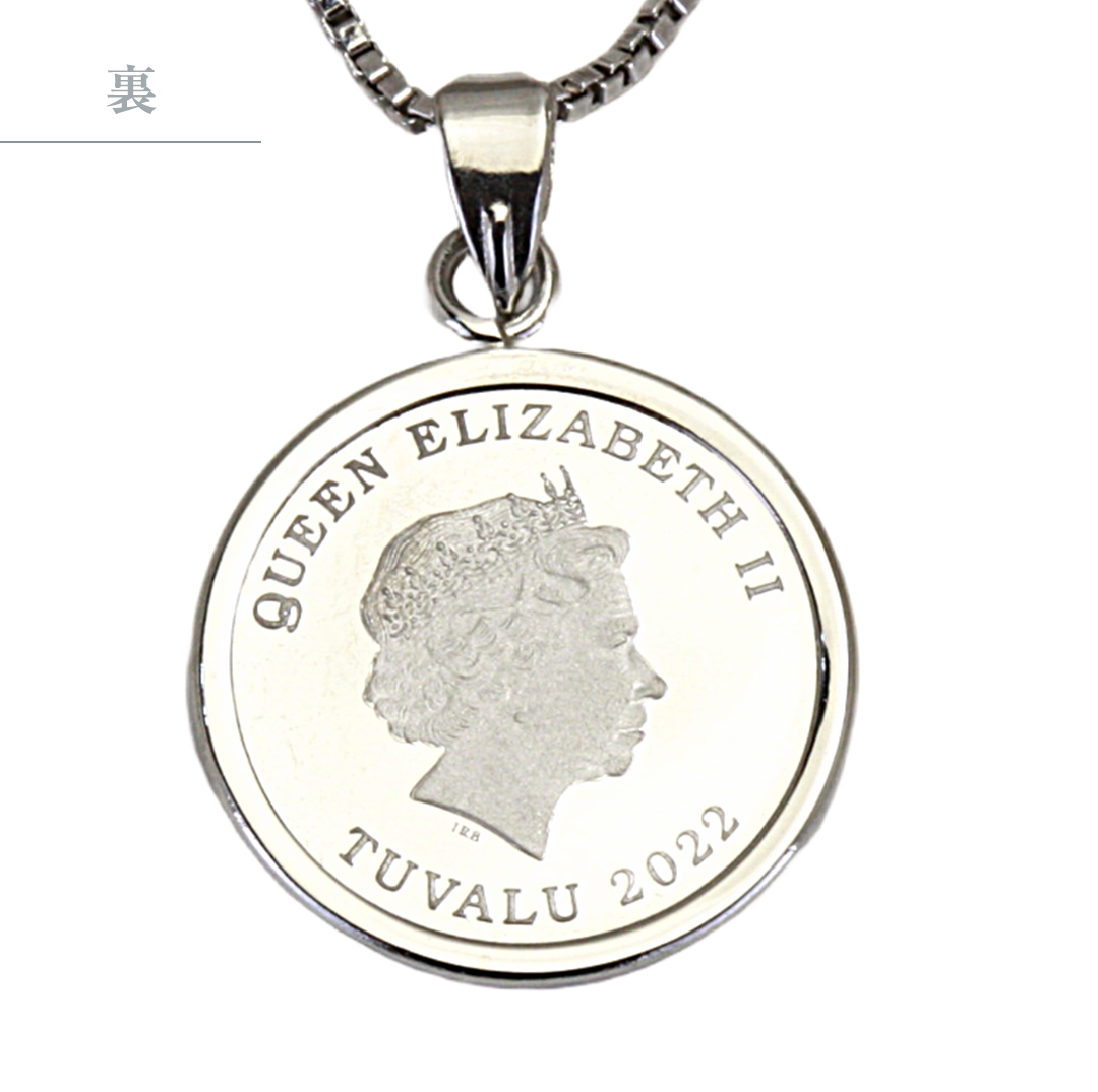 南太平洋のオセアニアにある小国ツバル政府発行の、公認金貨を使用したシンプルなエリザベスコインネックレスです。