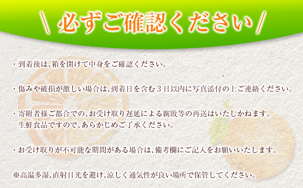 ※到着後は、必ず箱を開けて中身をご確認いただき、万が一ひどい傷み等がある場合は、到着日を含む3日以内に写真添付の上お問い合わせください。
