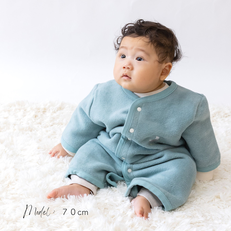 吸湿性にも優れ、静電気が起きにくい綿100%の毛布生地でスリーパーを制作。