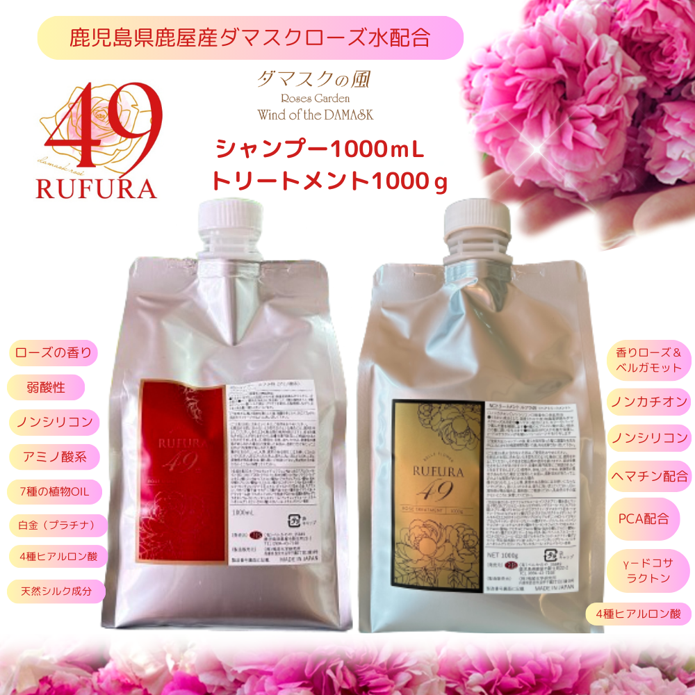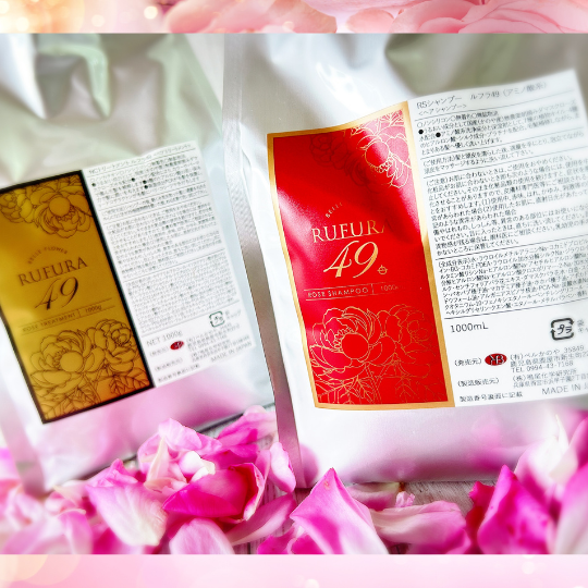RSシャンプールフラ49は<鹿児島県鹿屋産ダマスクローズ水配合>国産ローズシャンプーです 。