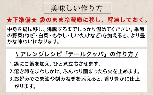 ご飯を入れ卵をちらすとテールクッパとしても美味しくお召し上がりいただけます。