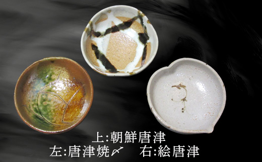 朝鮮唐津、絵唐津、織部唐津、唐津焼〆、カイラギ釉の5点セットです。