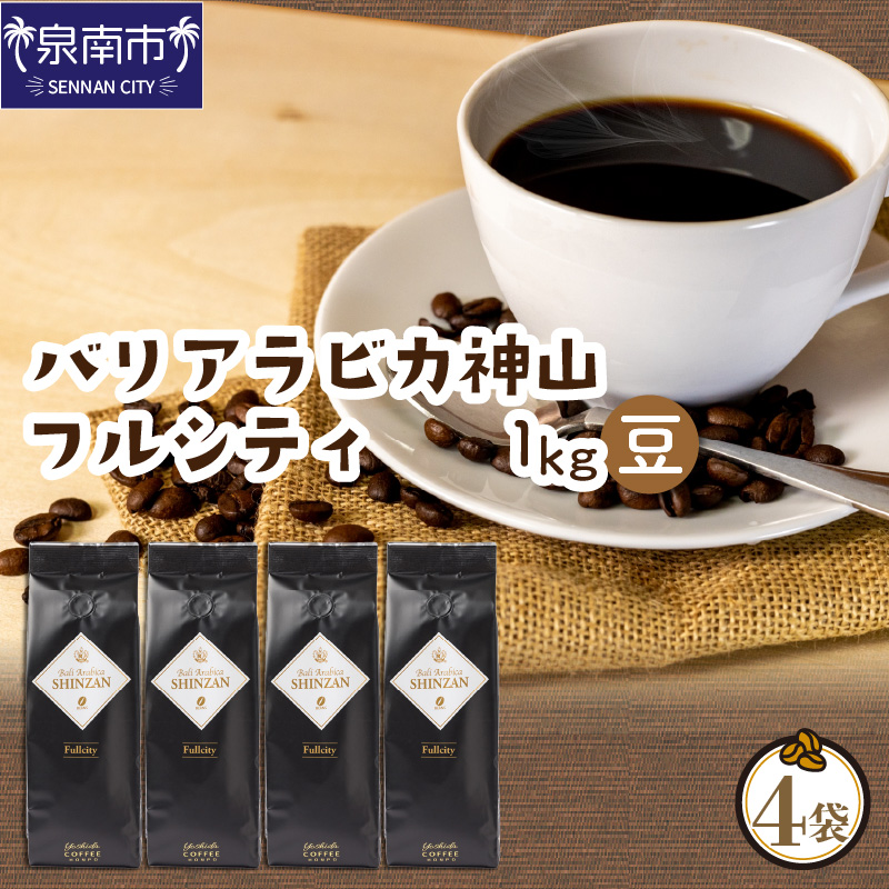 バリ・アラビカ神山 フルシティ 250g豆x4袋入りセット!!